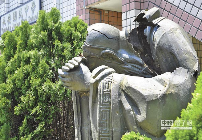 校方說,孔子雕像是塑膠和上陶土制作而成,內部是空心,材質并非石頭或銅,所以能輕易被斬斷。不過,有老師說,孔子雕像遭斬首后還捧著頭顱,“心里總覺得毛毛的!”學校總務主任吳鐵屏指出,純屬巧合,盼勿過多聯想。