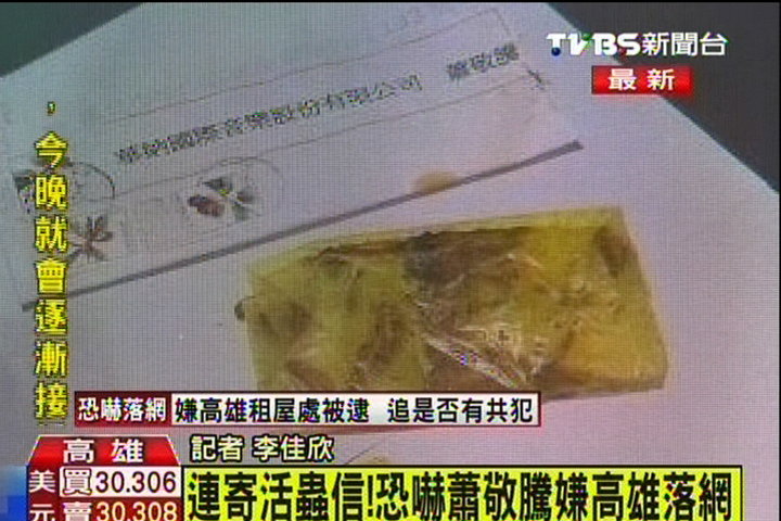 涉郵寄面包蟲、冥紙恐嚇藝人蕭敬騰等人的賴姓通緝犯昨天晚間在高雄落網。(圖片來自臺媒)