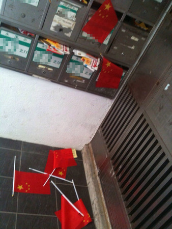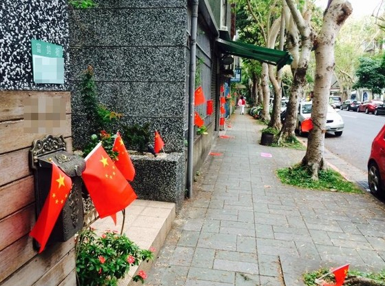 臺北一小區遭神秘三女子插滿五星紅旗(圖)