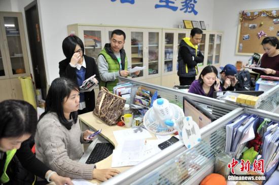 2月4日晚,廈門航空國際旅行工作人員正在加班,為臺灣客機失事做善后工作。當天上午,臺灣復興航空一架飛往金門飛機失事墜河,飛機上有廈門旅游集團國際旅行社組織的15人團,以及廈門航空國際旅行社組織的16人團,共31名大陸游客。 中新社發 呂明 攝