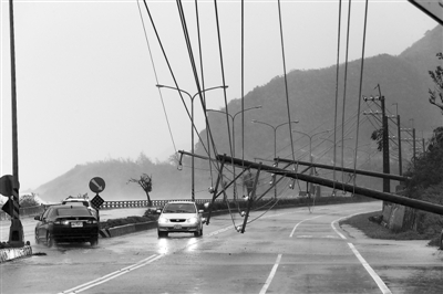 “莫蘭蒂”臺風天,電線桿被大風吹倒,造成大停電。