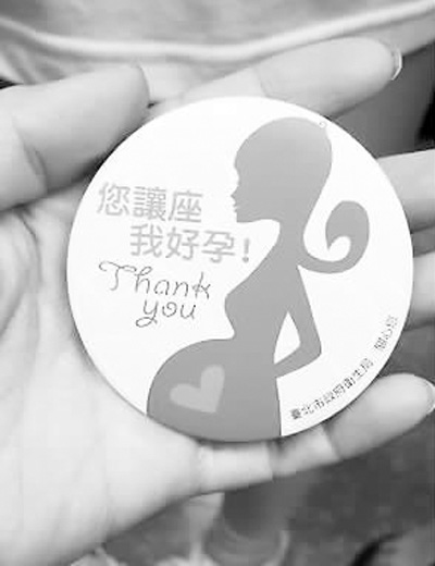 臺北捷運自2007年9月起發行“博愛識別貼紙”,有需求者可到各車站詢問處索取。2010年起臺北市也制作“好孕胸章”,提供準媽媽在搭乘大眾交通運輸工具時佩戴,提醒民眾看到能主動讓座。(資料圖片)