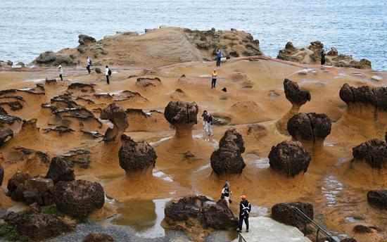 幾名游客在臺灣野柳地質公園游覽(10月18日攝)。由于進園游客比往年同期大幅減少,景區顯得十分冷清。臺灣觀光部門最新公布的9月統計數字顯示,大陸去臺游客相比去年同期減少37.79%,預計全年大陸游客將比去年減少90萬人次。新華社記者 朱祥/攝