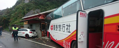 一輛載著陸客團的游覽車,不知何故沖入民宅,車上包含導游在內共23名乘客平安無恙,但駕駛員陳男失去生命征象。(圖:臺灣“中央社”)