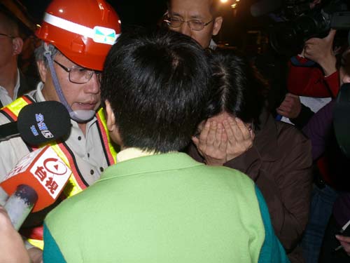 臺(tái)灣3號(hào)高速公路3.1公里處昨天下午發(fā)生嚴(yán)重山崩意外,葉姓市民疑似開車被壓在土石中,她的妻子(手捂臉者),在好友陪同下趕到意外地點(diǎn),傷心欲絕。(圖:《聯(lián)合報(bào)》)