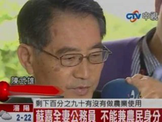臺當局農業主管部門負責人陳武雄強調,雖然農地不一定要農有,但如果9成以上面積未做農業使用,蓋的房子就不是農舍。名嘴楊文嘉則直指蘇嘉全徇私舞弊、明知違法卻犯法,證明他是個“偽善黑面型男”與“特權小白臉”。【詳細】