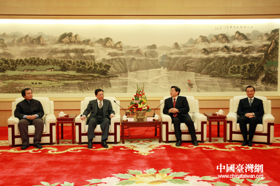 17日晚,廣西壯族自治區(qū)黨委書記郭聲琨(右二)和中臺辦、國臺辦主任王毅(右一)一起,會見來桂林參加第九屆兩岸關系研討會的臺灣中華文化總會會長劉兆玄(左二)等嘉賓。(中國臺灣網(wǎng) 鐘寶華 攝)