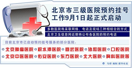 圖表:北京市三級醫院預約掛號工作9月1日起正式啟動 新華社發