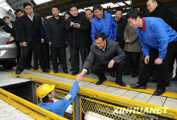 位于蕪湖的奇瑞汽車有限公司,是我國最大的自主品牌轎車研發、生產企業。在具有先進水平的技術研發中心、在緊張繁忙的汽車組裝線旁,李克強不時駐足停留,詳細詢問產品研發、生產和銷售情況。得知企業在應對國際金融危機中保持了強勁發展,李克強十分高興。他說,應對危機已經取得明顯成效,鞏固這一勢頭仍需付出努力。要保持宏觀經濟政策穩定性和連續性,根據新形勢新情況提高政策的針對性和靈活性,進一步激發經濟增長的內生動力,促進經濟平穩較快發展,為企業創造更好的環境。李克強指出,中部地區發展潛力大,要充分發揮比較優勢和后發優勢,積極承接國內外產業轉移,引入先進生產要素,創新體制機制,努力實現跨越式發展,增強對全國發展的支撐能力。