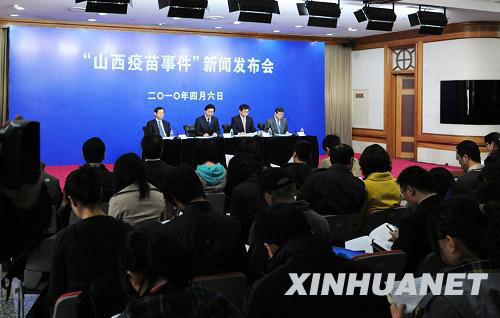 4月6日,衛生部和國家食品藥品監管局在北京舉行新聞發布會,通報“山西疫苗事件”有關情況。 新華社記者 何俊昌 攝