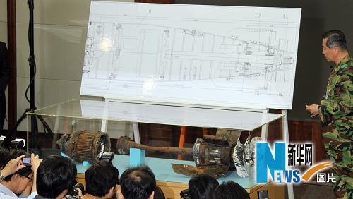 5月20日,韓國“天安”號軍民聯合調查團成員展示在事故海域搜集到的證據。當日,韓國“天安”號軍民聯合調查團公布正式調查結果稱,綜合各種證據來看,韓國海軍的“天安”號警戒艦是遭受朝鮮小型潛水艇發射的魚雷攻擊而沉沒的。新華社/聯合通訊社