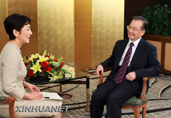 6月1日,中國國務院總理溫家寶在東京接受日本NHK電視臺專訪。新華社記者 龐興雷 攝