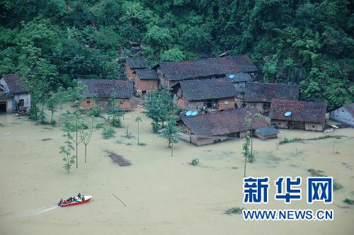 6月20日,受災(zāi)嚴(yán)重的南丹縣立坳村完全被水浸泡。6月17日以來(lái),廣西南丹縣八圩瑤族鄉(xiāng)境內(nèi)普降大暴雨。災(zāi)情發(fā)生后,鄉(xiāng)黨委、政府第一時(shí)間緊急轉(zhuǎn)移和安置受災(zāi)群眾,確保群眾生活。南丹縣緊急調(diào)撥帳篷65頂、盒飯1200份、礦泉水100件、大米600斤、豬肉60斤、蔬菜200斤、食用油和食鹽等發(fā)放到受災(zāi)群眾手中,并安排人員24小時(shí)值班,確保通信暢通。新華社記者 盧哲攝