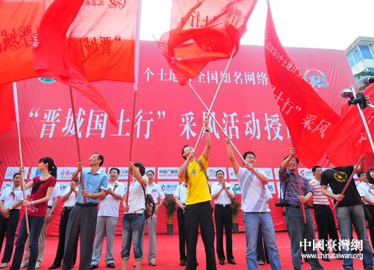 “全國知名網(wǎng)絡(luò)媒體晉城國土行”采風(fēng)活動授旗儀式(中國臺灣網(wǎng)記者 孫金誠 攝)
