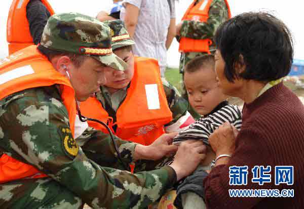 6月22日,武警醫療隊員在撫州臨川市唱凱鎮救治受傷的群眾。 6月24日開始,江西將再次出現強降雨。為確保群眾生命安全,防止群眾反復受災,22日下午開始,江西省加大撫河唱凱堤決堤災區群眾轉移力度,眾多原來在自家二三層樓房自我安置的群眾,也將及時進行轉移到戶外安全地帶。目前,江西已經加大了人力和運輸工具的投入力度。新華社記者周科攝
