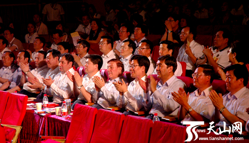 自治區領導韓勇、李屹、肖開提·依明、努爾蘭·阿不都滿金、白志杰、爾肯江·吐拉洪等一起觀看演出。(記者王麗麗 金浩攝影報道)