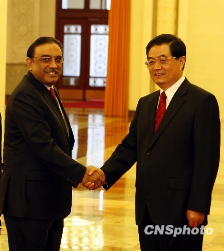 中國國家主席胡錦濤7日下午在人民大會堂同來華進行工作訪問的巴基斯坦總統(tǒng)扎爾達里舉行會談。雙方就進一步發(fā)展中巴戰(zhàn)略合作伙伴關(guān)系等共同關(guān)心的問題深入交換意見,達成廣泛共識。