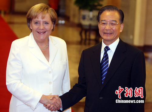 中國國務院總理溫家寶與德國總理默克爾16日上午在人民大會堂舉行會談。