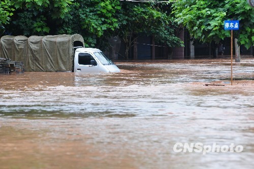 自7月17日凌晨起,四川內江市東興區境內普降大暴雨,局部地區出現特大暴雨,據當地氣象部門監測,該區最高降雨量達到211毫米,為今年入訊以來的最強降雨。此次大暴雨導致洪水暴發,河水陡漲,區內主要交通要道內高公路被迫中斷,沿線10余萬群眾出行受阻,清流河、青龍河流域的蘇家、楊家等5個鄉鎮街道積水,最深處達到2米以上。中新社發 蘭自濤 攝