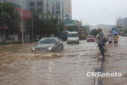 7月26日下午,浙江溫嶺溫嶺汽車站前一片汪洋。據浙江溫嶺市氣象臺提供數據,7月25日晚8時至26日下午5時,溫嶺市降雨270毫米,是1960年有記錄以來降雨量最大的一次。溫嶺市區一片汪洋,人民路、萬壽路、中華路、三星大道等城市主要道路被洪水所淹。 中新社發 黃曉慧 攝