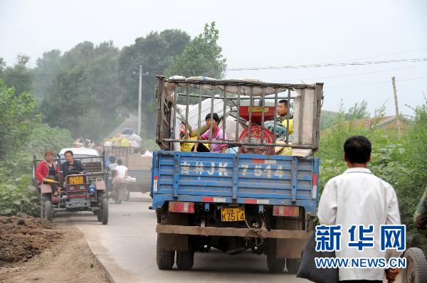 8月4日,第二松花江沿岸各村村民裝載著家中的貴重物品和糧食撤離家園。新華社記者馬揚攝