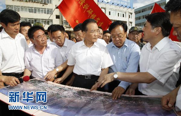 8月8日下午,中共中央政治局常委、國務(wù)院總理溫家寶趕到發(fā)生特大泥石流災(zāi)害的甘肅舟曲縣災(zāi)區(qū),察看災(zāi)情,指導(dǎo)救災(zāi)。新華社記者 李學(xué)仁 攝