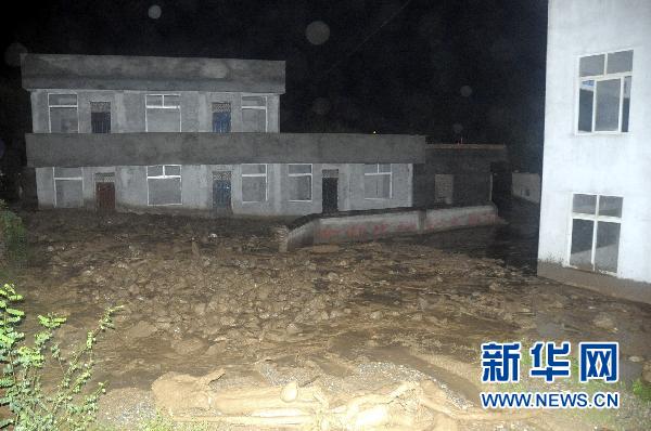 這是8月12日晚拍攝的被泥石流侵襲的甘肅文縣石坊鄉舊關村民房。 新華社發(劉二銀 攝)
