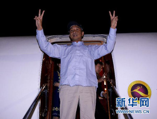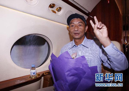 9月25日1時12分,由外交部和農(nóng)業(yè)部組成的聯(lián)合工作組已接護(hù)中國漁船船長詹其雄,乘坐中國政府包機(jī)啟程回國。 記者陳建力攝