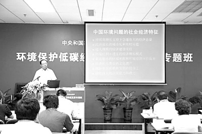 圖為中央和國家機關司局級干部自主選學專題班——“環境保護低碳經濟及可持續發展專題班”開講現場。