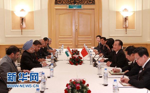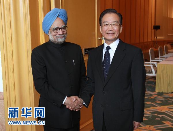 溫家寶29日在下榻的酒店會見印度總理辛格
