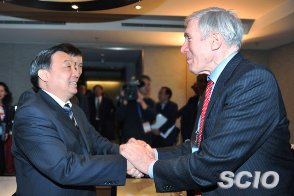 11月8日晚,國務院新聞辦公室主任王晨會見了出席第四屆中美互聯網論壇的美國副國務卿羅伯特·霍馬茨一行。(國新網 郭研攝)