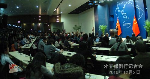 2010年12月2日,外交部發言人姜瑜主持例行記者會。