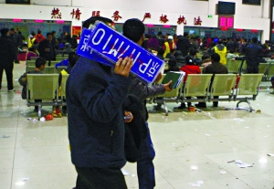 一名手持車牌的男子走過辦證大廳。昨晚23時(shí),花鄉(xiāng)舊機(jī)動(dòng)車交易市場(chǎng)辦證大廳內(nèi)依然火爆,辦牌者絡(luò)繹不絕。截至今日零時(shí)20分,仍有上百人在排隊(duì)等待。本報(bào)記者 吳江 攝