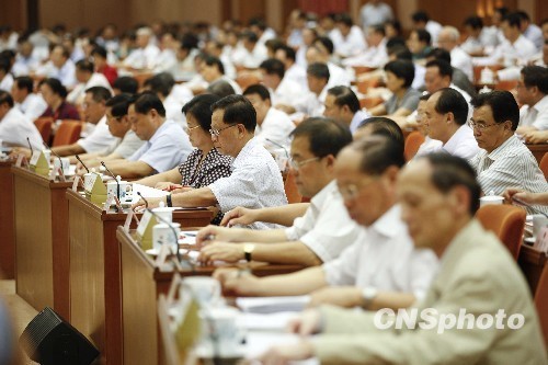資料圖:2010年6月25日,十一屆全國人大常委會第十五次會議在北京人民大會堂閉幕,表決通過《中華人民共和國石油天然氣管道保護法》和《全國人大常委會關于修改中華人民共和國行政監察法的決定》以及通過了多項任免案。 中新社發 盛佳鵬 攝