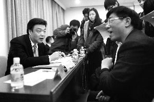 15日晚,北京市常務副市長吉林接受代表的問詢,北京市發改委、市科委等7個委辦局在北京會議中心“擺攤”接受代表委員咨詢問政。本報記者 趙亢 攝影報道