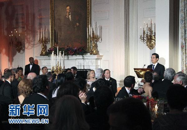 1月19日,中國國家主席胡錦濤在白宮出席美國總統(tǒng)奧巴馬舉行的歡迎宴會。 新華社記者蘭紅光攝