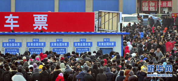 上午9時許,北京站各售票窗口開始售票。15分鐘后,售票大廳的信息屏顯示,前往哈爾濱、上海、杭州、寧波等方向的車票售空。30分鐘后,所有始發車次的座票和臥鋪票售罄,只剩下部分車次的少量站票有售。
