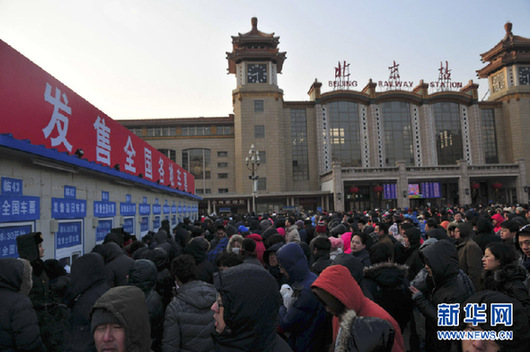 為了應對大客流量,北京西站昨日啟用地下候車區,北京站售票廳則臨時限流。昨日(22日)開售1月31日(臘月二十八)車票,北京各大火車站,所有始發列車座票和臥鋪票告罄。