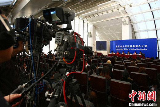 資料圖:2010年12月23日,北京市政府召開新聞發(fā)布會(huì),公布了《關(guān)于進(jìn)一步推進(jìn)首都交通科學(xué)發(fā)展 加大力度緩解交通擁堵工作的意見》,將實(shí)行綜合措施治理交通擁堵。中新社記者 富田 攝