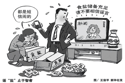 日本九級大地震引發的核泄漏危機,使罕見的“搶鹽熱”一度達到沸點。經政府多管齊下,及時辟謠,加大食鹽供應,“搶鹽潮”迅速平息。目前,福島核電站的情況還在演變,人們對核污染擴散的擔憂依然存在,一些荒唐的謠言可能又在醞釀、發酵。謠言過后,我們不禁反思,災難謠言究竟因何而起?究竟誰才是謠言的終結者?(嚴冰 劉哲 吳楊)