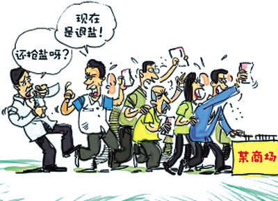 “雜貨攤前擠滿了人,以往得賣一年的6箱鹽,不到一天就賣光了。”北京朝陽區某雜貨店的趙老板經歷了從搶鹽到退鹽的全過程。“來買鹽的顧客都在說‘吃碘鹽防輻射’,結果沒兩天,全過來要求退貨,我只好再給這些顧客退貨退錢,積壓的幾箱鹽還不知道怎么辦。”