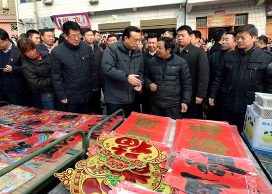 2014年1月,李克強到陜西省安康市旬陽小河鎮集貿市場考察。新華社記者李濤攝