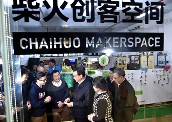 2015年1月4日,李克強在考察深圳柴火創客空間(中新社記者劉震攝)
