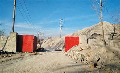 2015年12月27日至31日,在十百戶西路東側一處石料廠門前,一直停有路政車輛。村民質疑,此處存料場似有路政人員“保護”。