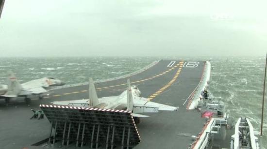 資料圖:海軍遼寧艦在渤海某海域進(jìn)行艦機(jī)融合訓(xùn)練。