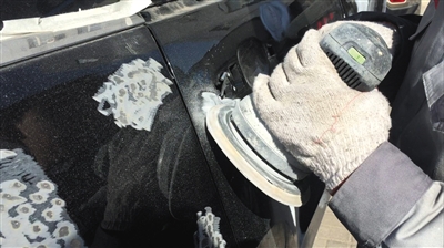 2月26日中午,19輛“大切”停放在修車行院內,五六名修車工人正在拆卸其中一輛大切的車門,一旁三輛“大切”剛噴完漆,外觀和新車幾無差別,還有幾輛剛做完鈑金。