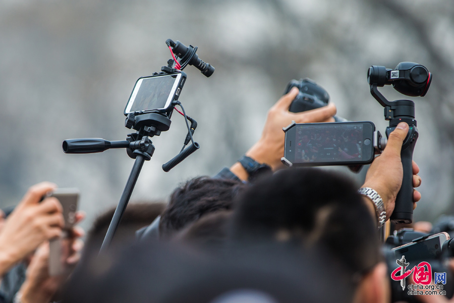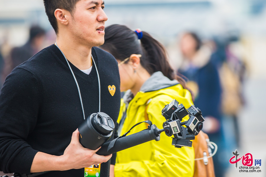 3月3日,中國人民政治協(xié)商會議第十二屆全國委員會第四次會議在北京人民大會堂開幕。步入會場前,各媒體記者紛紛亮出“武器”,各種新科技和新裝備引人注目,成為一道獨特的風景線。中國網(wǎng)記者 鄭亮 攝