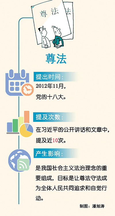 自中共十八大以來,隨著全面依法治國的深入推進,法治觀念更加深入人心。推進法治建設,其中首要的一環就是樹立“尊法”意識。據不完全統計,在習近平總書記的公開講話與文章中,“尊法”一詞已經出現過近10次。