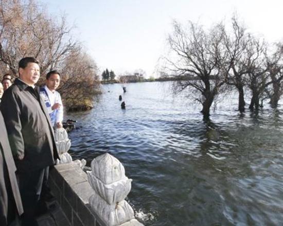 2015年新年伊始,習(xí)近平總書記在云南考察工作,他專程來到大理市灣橋鎮(zhèn)古生村,詳細(xì)了解洱海濕地生態(tài)保護(hù)情況。(新華社記者 鞠鵬 攝)
