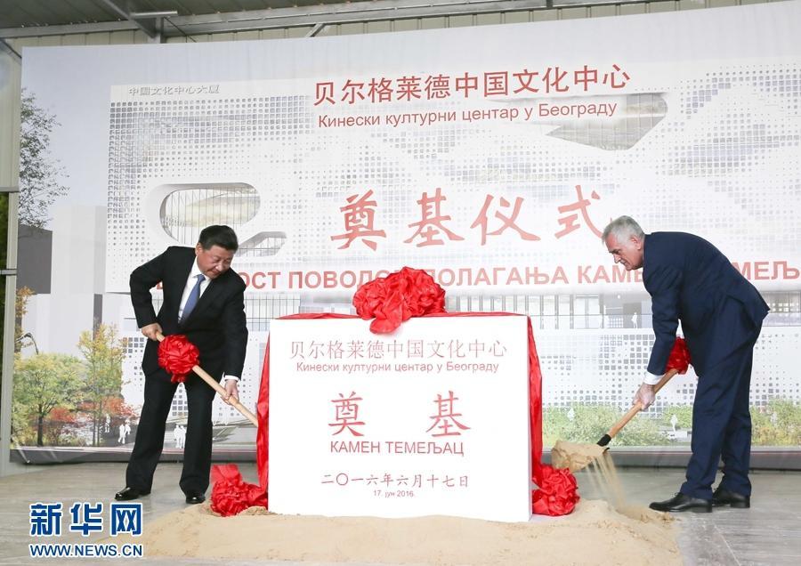 6月17日,國(guó)家主席習(xí)近平同塞爾維亞總統(tǒng)尼科利奇在貝爾格萊德共同出席中國(guó)文化中心奠基儀式。 新華社記者 蘭紅光 攝 圖片來源:新華網(wǎng)